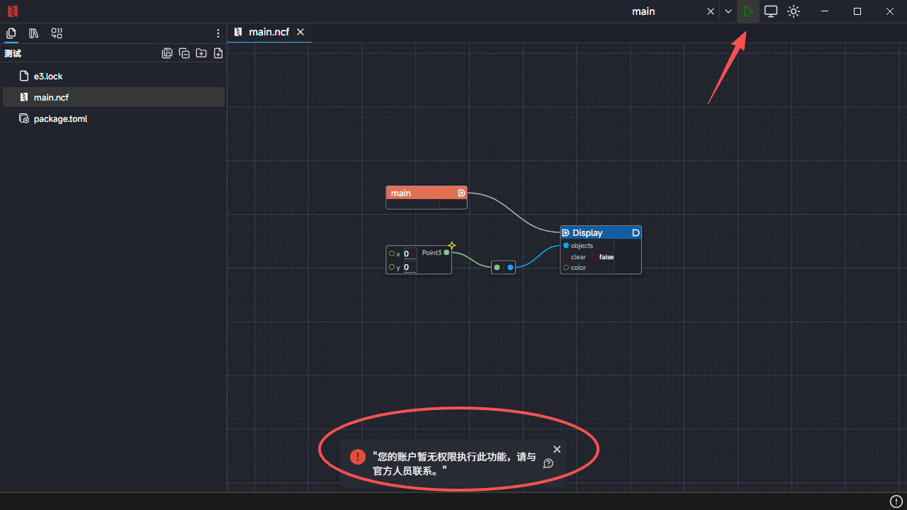 3、E3论坛注册了与NOAH(NCFZ)同用户名/Email和同密码的账号。安装E3后按照 快速上手 | Hello E3 操作到首次运行时提示我没有权限。
